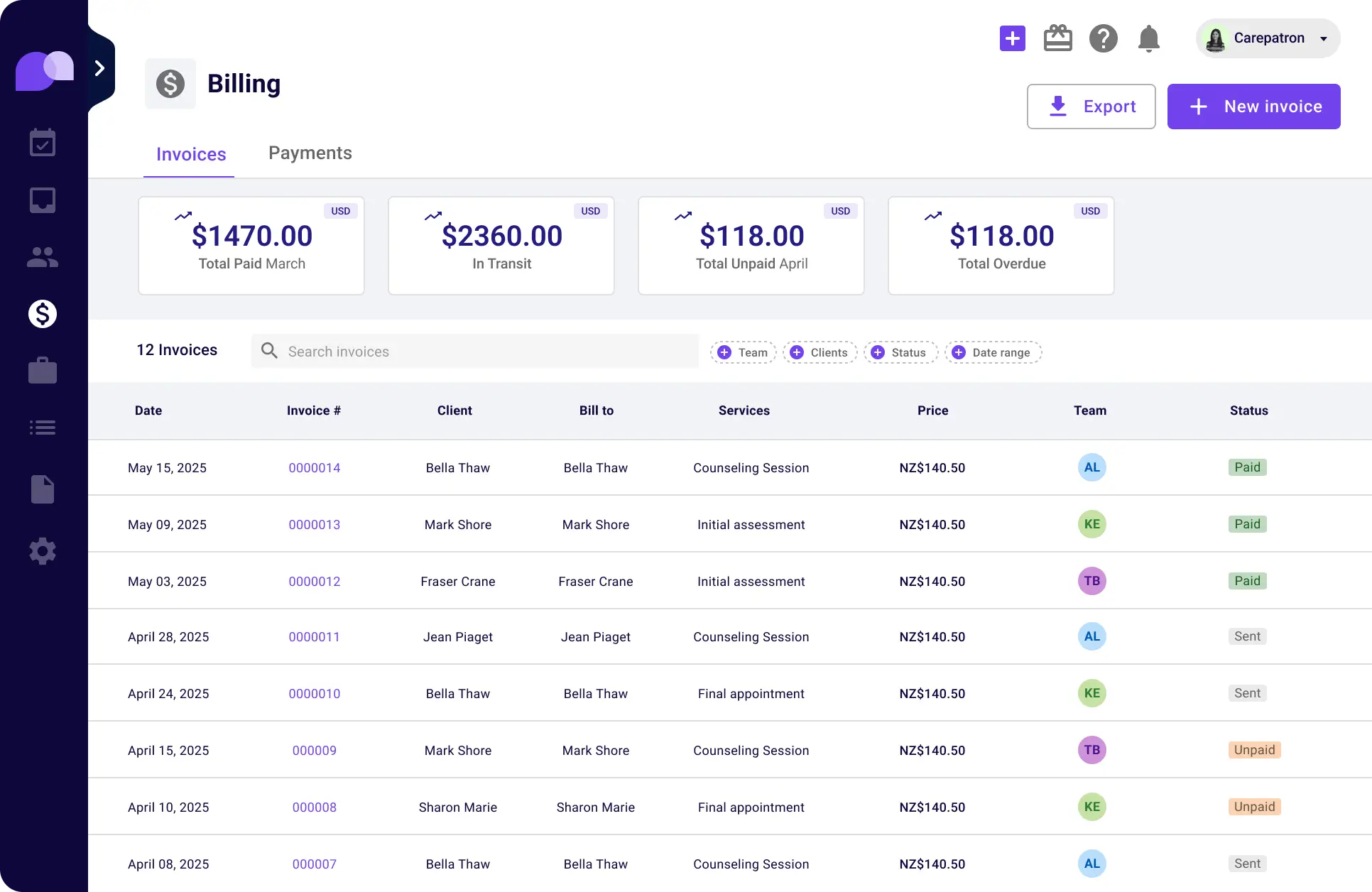 Carepatron is a true all-in-one experience designed for practitioners. Automate tasks with AI, simplify your workflows, and access everything you need for an optimized practice.
