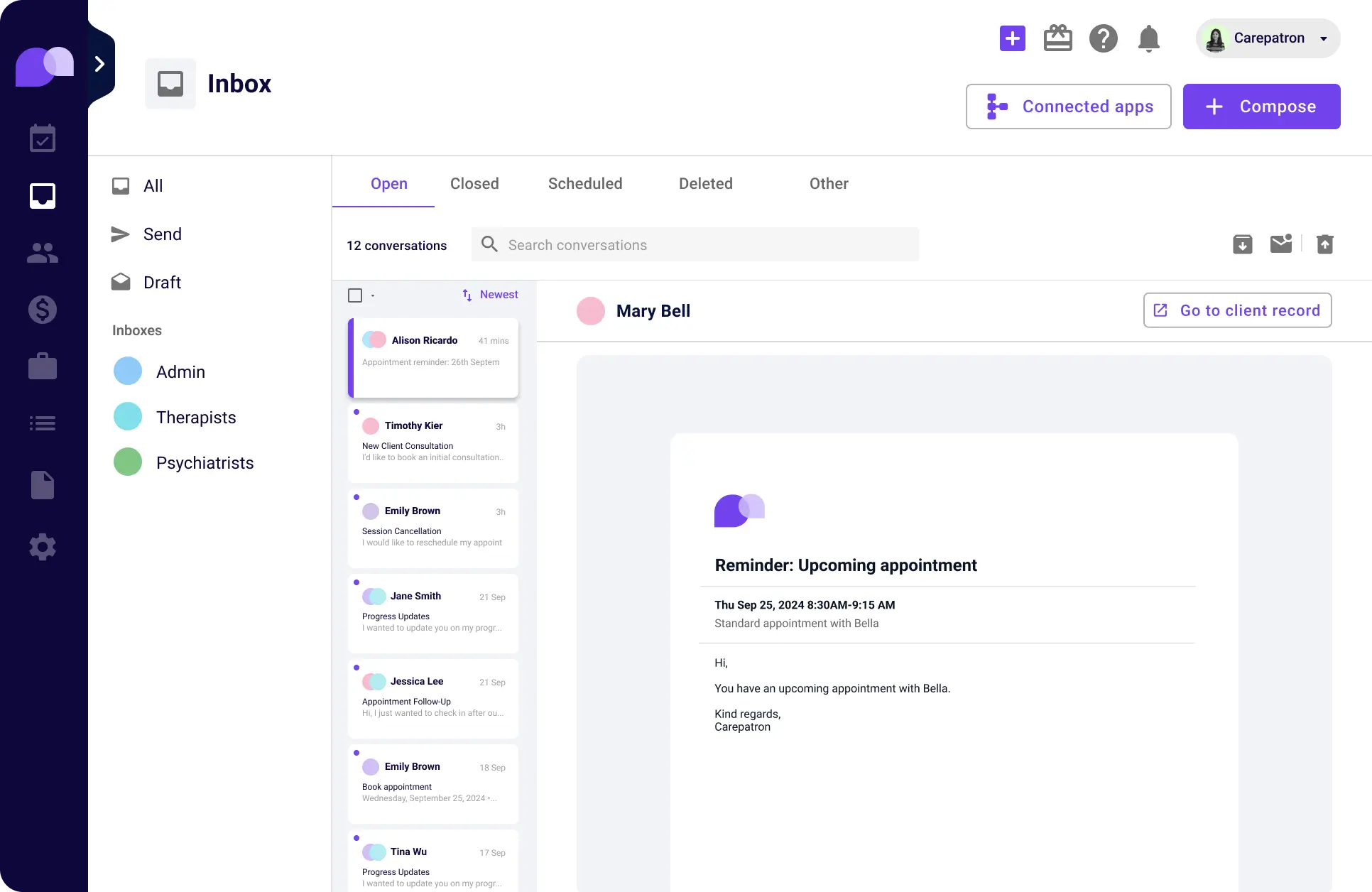 "Carepatron saves me 2 hours everyday"